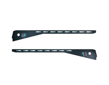 Enhance your game with the new modular Side Armor. This black side armor features laser cut bullet shaped openings with a silver foil backing and a zombie head in crosshairs. This side armor can be upgraded with the all new side armor lighting kit.